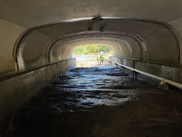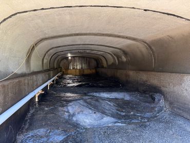 On January 9, 2024, the river exploded with stormwater runoff from heavy rains. Based on our calculations, the river peaked at over 5,000 cubic feet per second. Normal run-of-river flows average below 100 cfs. This is the second time in three years that the flows have risen to this level. The Design-Build team will include design features to handle this type of event during construction.